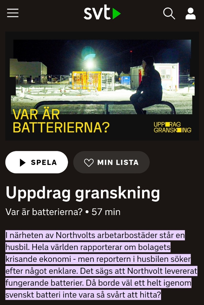 Samma gäller ju lögnerna om stor batteriproduktion. Nu säger man att det var bara liten produktion och batterierna var antingen “provbatterier” eller gick till återvinning.