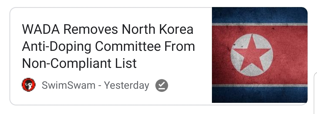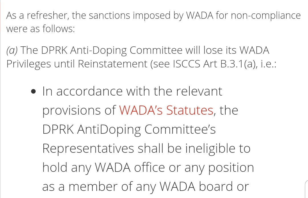 Nordkoreas antidoping-organisation har varit avstängd i 6 månader. WADA hade kritiserat deras verksamhet. Men med kinesisk hjälp har man nu fått ordning på detta och NK:s antidopingverksamhet är godkänd igen.