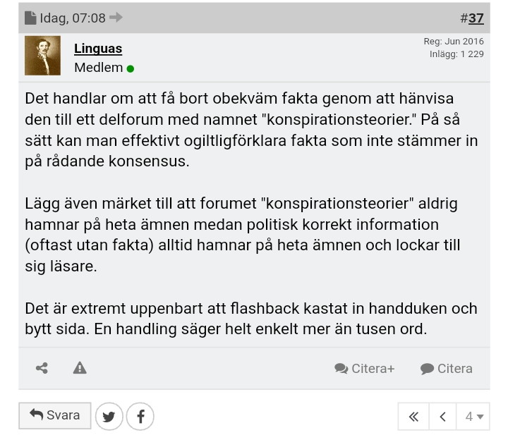 2018 04 07 Det största sociala forumet i Sverige, Flashback förefaller gå all out på censuren och förbjuder andra åsikter än de som MSM presenterar: