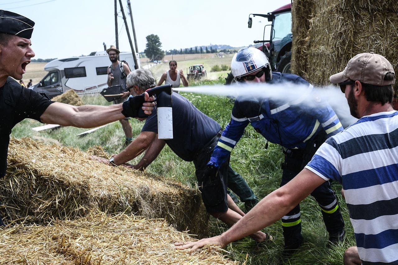 Idag sprayade franska polisen tårgas mot bönder som hade protestaktion vid Touren. Tyvärr träffade gasen även cyklisterna