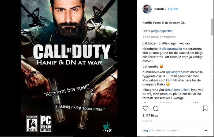 Genom att visa sig med (Photoshoppade) vapen och påstå sig kriga mot DN ger Bali möjlighet för DN att kritisera honom för våld och hot vilket naturligtvis DN gör. Dock inte på något allvarligt sätt.