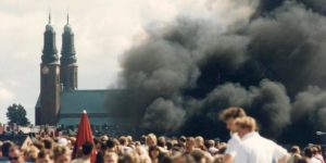 1993, 8 augusti Också den andra kraschen utspelade sig inför tv-kameror, mitt under pågående Vattenfestivalen i Stockholm. Planet kraschade på Långholmen och en person brännskadades. Piloten var återigen Lars Rådeström. Han sköt ut sig själv innan kraschen. Orsaken var liknande: Han hamnade i otakt med styrsystemet.