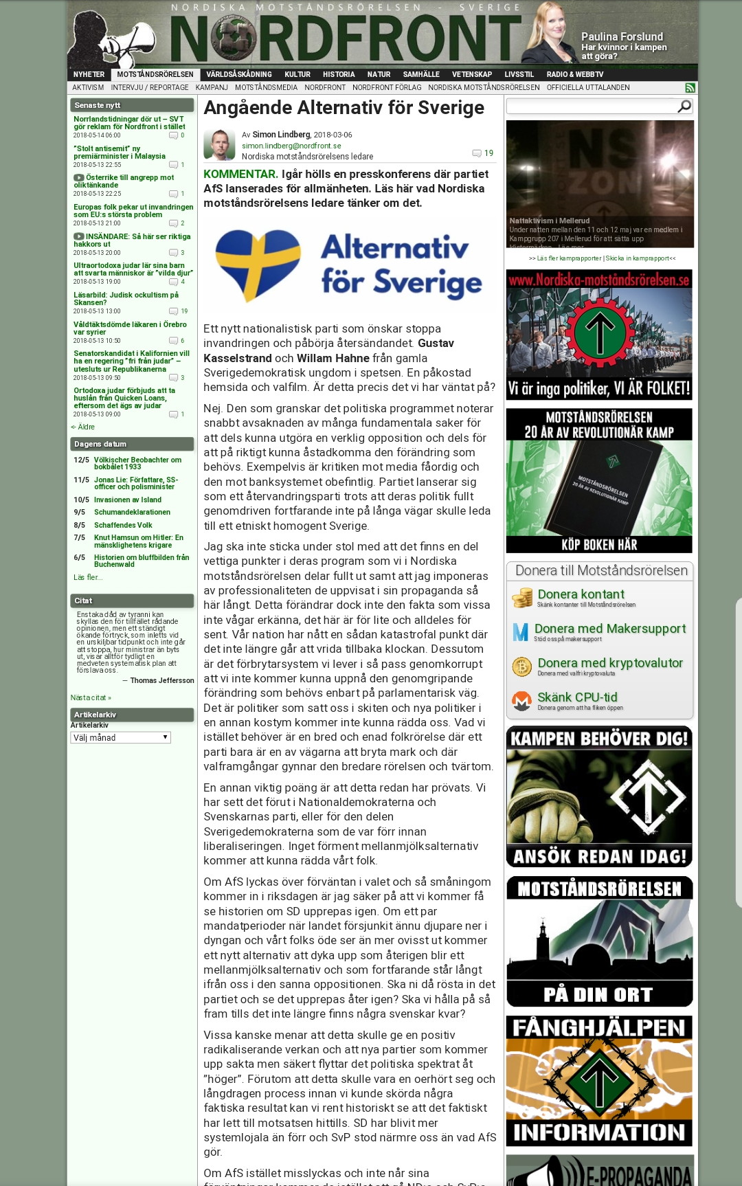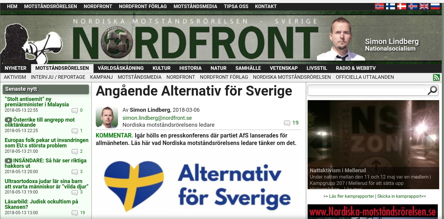 Siten nordfront.se är kopplad till NMR.